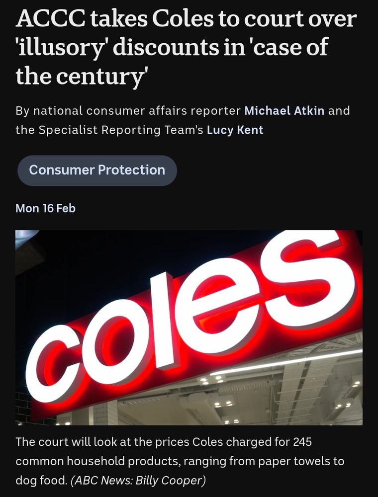 I knew that Woolies are being pursued for similar practices. It’s likely I read it in the ABC News. And it made sufficient impression that I remember it.
