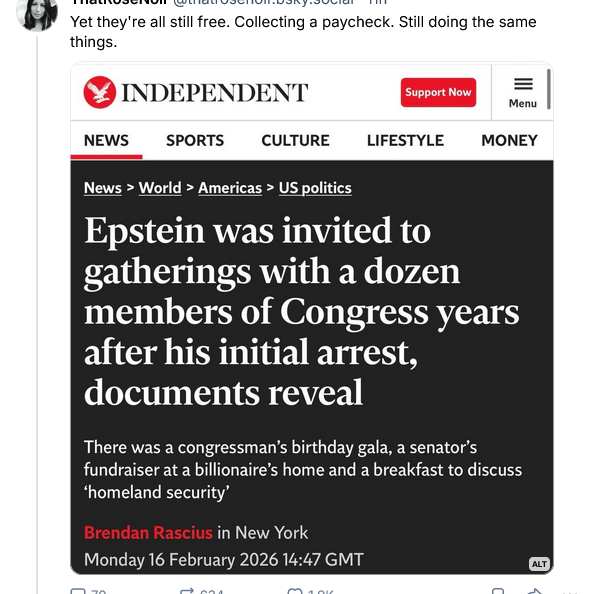 The New York Times wrote of the Epstein files: “The pages tell a story of a heinous criminal given a free ride by the ruling class in which he dwelled, all because he had things to offer them: money, connections, sumptuous dinner parties, a private plane, a secluded island and, in some cases, sex.”