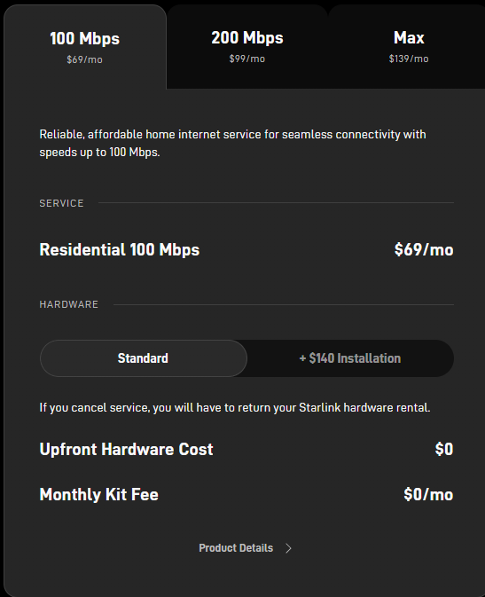 Check out the plan and speed prices and have to pay for the Starlink Kit too.