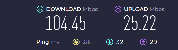 Upload – 30 – 50 MbpsLatency (ping) 22 – 28 ms