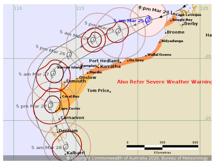 It’s only Tuesday and we’re looking at impacts 4-5 days away, but tropical cyclones in Western Australia operate a little differently to tropical cyclones in the Coral Sea. Unlike their Coral Sea counterparts, tropical cyclones in Western Australia once they recurve become far more predictable which provides a higher degree of confidence than say Alfred last year for southern Queensland and Brisbane.