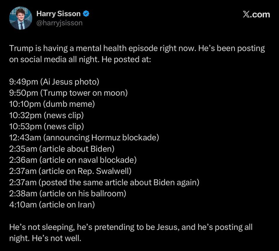 While this morning, Trump appeared to wash his hands of his Iran war, there was an undertone of panic in his post, especially coming as it did just before an exclusive story by Alexander Ward and Meridith McGraw in the Wall Street Journal reporting that Trump has “told aides he is willing to end the military campaign against Iran even if the Strait of Hormuz remains largely closed.”
