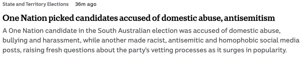 Subject: One Nation's Selection Vetting