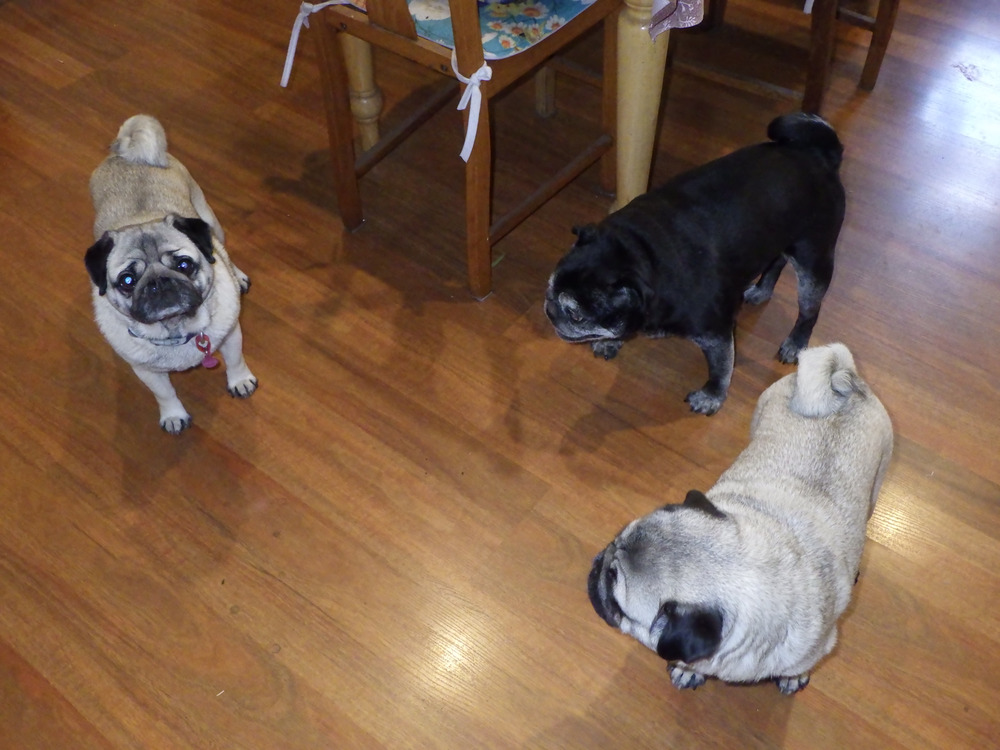 There is a general milling about of Pugs happening here. They are trying to convince me that the clock is wrong and really it is 5 o’clock and they should be fed.