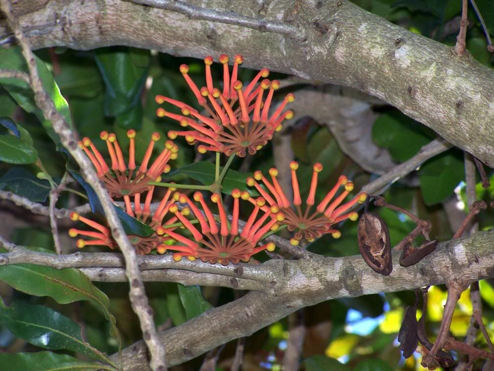 Well the tree isn’t new but the buds are! :)This Firewheel tree lives in the corner of my vegie area and is nice to be under in almost all weather. Just far enough away from the house to be out of earshot of the phone too!