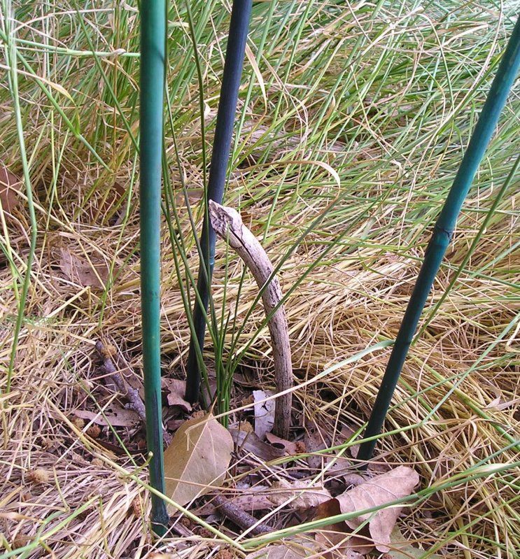 OK, here are the grasses I have grown so far from seed collected in our bush block near Digby (far SW Victoria). This is my general grass area, the grasses are presently seeding up. I’ve weeded out the obvious exotics, and when the seedheads are dried, I will ‘prune’ them off and drop them down between the clumps for more babies to come up next season.