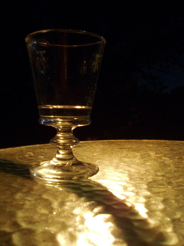 Vodka glass snapped in tonight’s night garden. I also took various photos of the moon and the stars etc, but none of them did justice to the cool crystal clarity of the night.