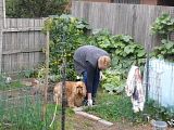 I had 2 strip vegie beds along the fence and I dug another to join them up and another on the end, so now I have one long bed out there. I lifted the rhubarb (sorry Lucky) the other day, and it has an enormous root system, so I’ll replant it in the new bed. I added compost and manure and blood and bone there so it should do better than before. It had too much shade where it was, and very poor soil.