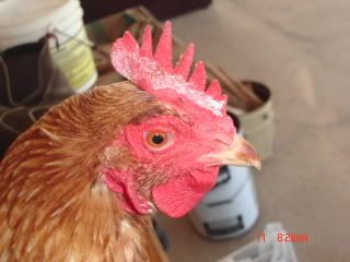 ok one of my hens has a white stripe of something on her comb i don’t know what it is they been in there pen all day just went out to feed them and noticed it.