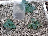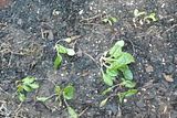 - Three cucumbers (maybe some of them are doubles). Couple have their first set of true leaves