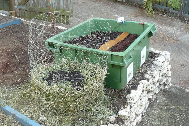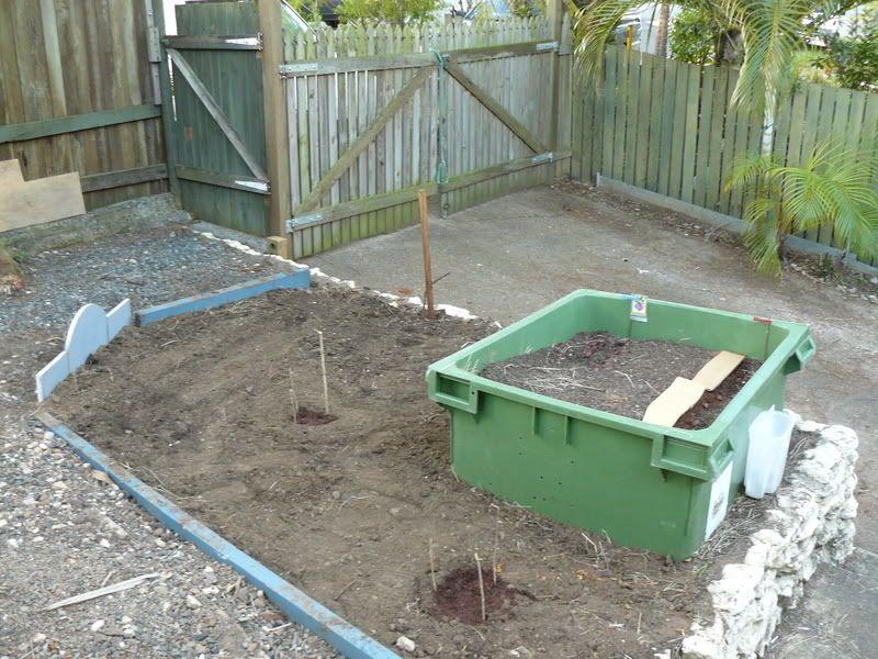 The Man has decided espaling (sp) citrus down the driveway fence is a good idea. Yeehaa! Even though it means work for him – digging out the rocks and clay so we can put in some decent soil. Still working on the trees at the end of the drive. I think he’s feeling a little left out of the veggies. He’s talking about growing corn where the lawn used to be. We’re not competitive or anything (not half) so can see this ending in tears!
