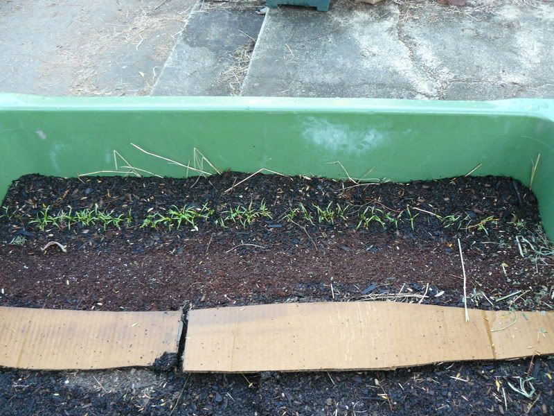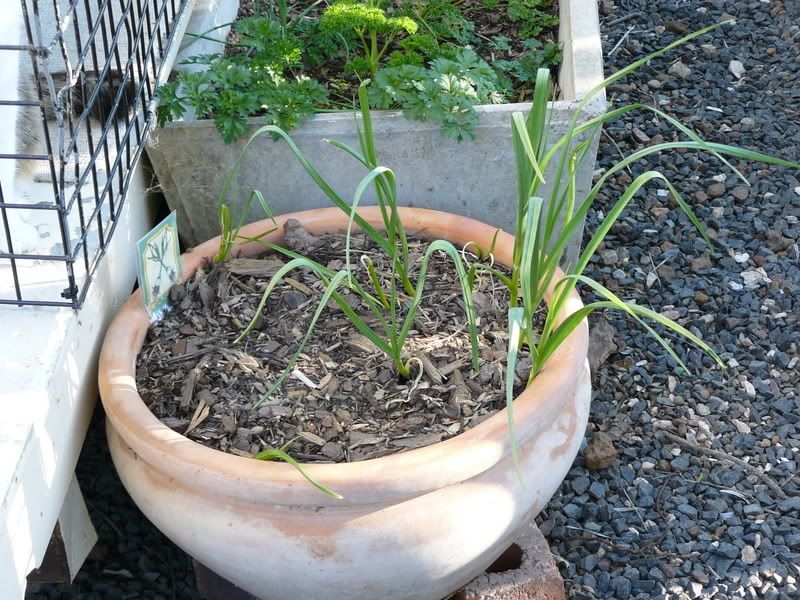 Think that’s all I’ve got out there at the moment. This arvo planning to plant some more lettuce. The batch I planted with the pak choy didn’t come up. Going to try Pete’s seedling mix. Need to dig over the spare bed; dig in some cow poo; and sow the spuds and corn. I’m thinking of then just scattering the rest of my dubious seed around them. See what happens.