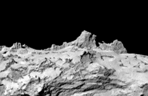 A view of the comet’s limb from one of the previous snaps. At last, we’ll be exploring an outer space landscape that looks like it came out of Fireball XL5 or any number of old sci-fi sets & illustrations: