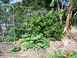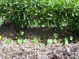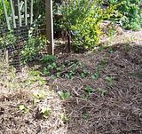 I have made inroads getting the 100 bales of sugar cane straw out. Lining the pool-fencing-fenced boundary as a low windbreak and slight weed impediment,( but would really need a fine insect screen type barrier though with all the fluffy-topped weed s whose seeds are blowing in from next door), and have just about mulched all the veggies.