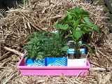 - liquid pigeon strained into drink bottles and some applied over sweetpeas, spud mulch and new celery.