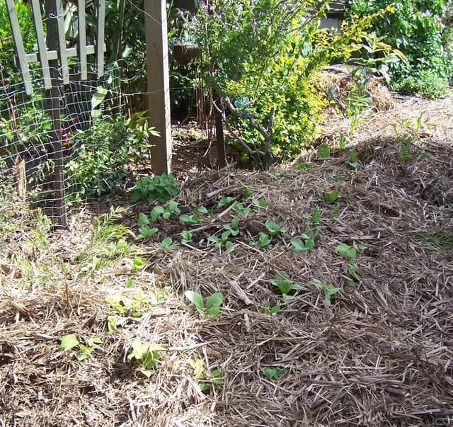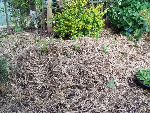 I have made inroads getting the 100 bales of sugar cane straw out. Lining the pool-fencing-fenced boundary as a low windbreak and slight weed impediment,( but would really need a fine insect screen type barrier though with all the fluffy-topped weed s whose seeds are blowing in from next door), and have just about mulched all the veggies.