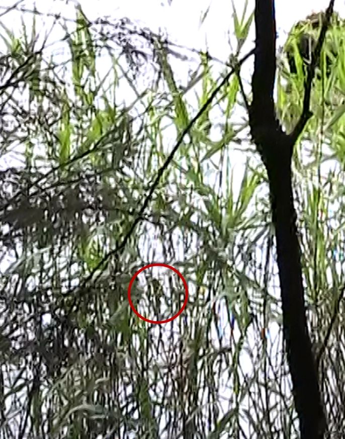 Small brown bird. Clamorous Reed-Warbler, in red circle.