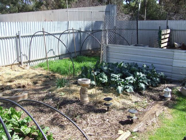 This warm weather has bought the growth on in the garden:DPicked enough silver beet this morning for the ducks, chooks and bunnies. Still looks FAB TAB in the garden after the slashing:)