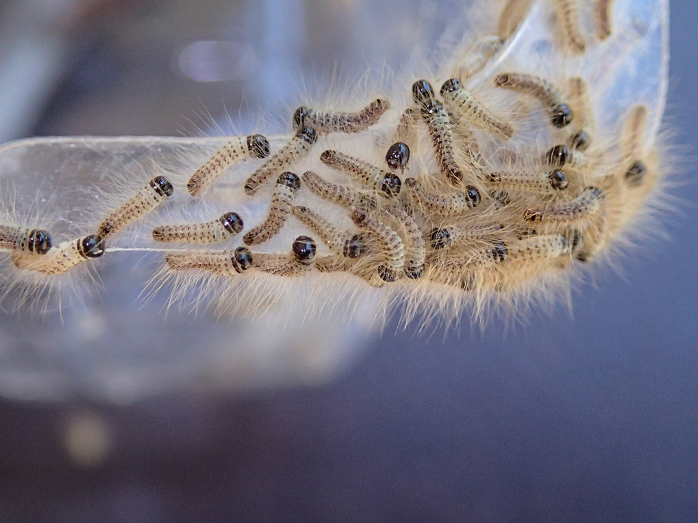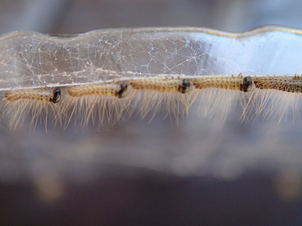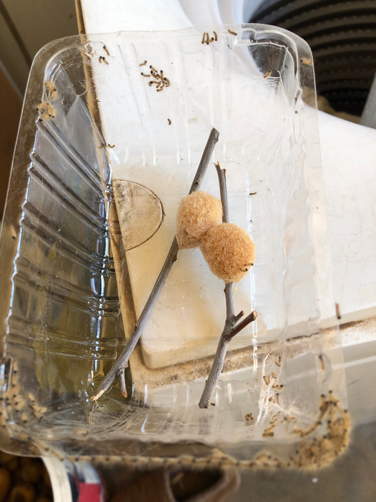 When granddaughters were here having a bit of a nature walk around my tree plantings, one asked what’s that grandpa? From a distance I automatically said “that’s an ootheca”. However, closer inspection showed it was none of the sort. Granddaughter said, “they look like caterpillars grandpa”.