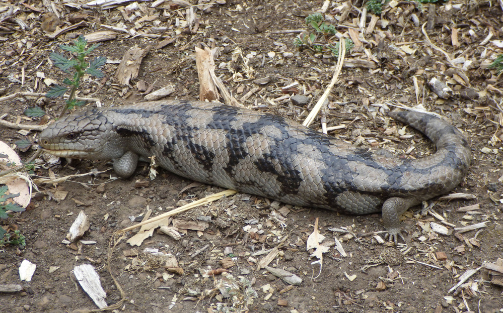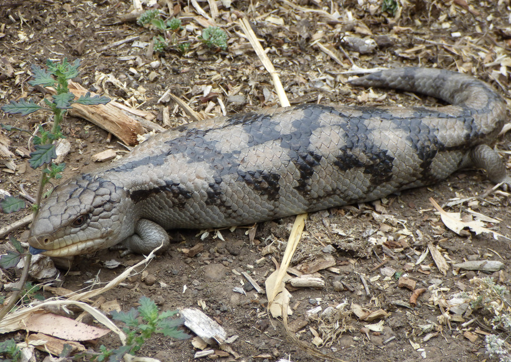 And this lady needs to learn not to come into our backyard…or at least stay out of Bruna’s sight. Bruna did the “I’ve got it! I’ve got it!!” bark again. Mr buffy saw the lizard lunge at her and then she hopped straight in to pick it up in her mouth. She did put it straight down on command though. It’s still not damaged, she must be being gentle. But it’s not a Good Thing. Dogs are now locked up while the lizard decides what to do next. I don’t know how to herd a bluetongue. I could put on some gauntlets, pick it up and put it in the front yard again, but it’s likely to just wander around again. We will just have to keep rescuing it. By the size of it, it’s got some age on it, surely that means some wisdom too?