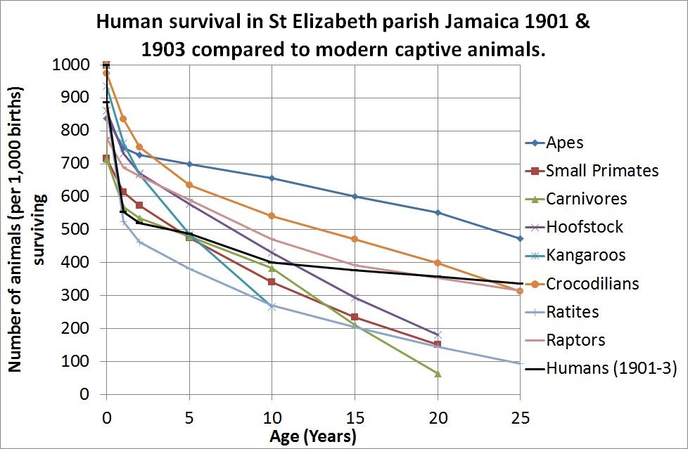 That’s despite the fact that pet and zoo mammals have access to completely modern medical care. My main reference on the mortality of pet and zoo animals is http://www.demographic-research.org/volumes/vol15/14/15-14.pdf from the year 2006.