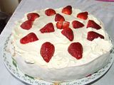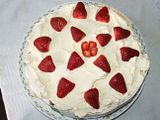 well my cake turned out pretty good for a first effort. I have learnt to add the flour to the beaten eggs gradually or you will have a big bubble of dry flour in your mix which breaks up into ever smaller bubbles so it takes more working than it should. Also when adding the melted butter make sure it is ALL mixed in before pouring in the tin or you will end out having to mix it while IN the tin, again working it more than it should. So the cake was a bit heavier than I would have liked, but good for a first try. I have decided that I should have added more strawberries in the centre and although the icing was made with real strawberries it still tasted just like pure sugar. If I added more strawberries then it made it too runny, hence the dribbles down the side. I had to take the picture quickly as the strawberries kept sliding off too! think I’ll just stick to whipped cream ;)