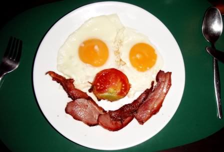 I know it sounds strange but we’re having a big brekky fry up for dinner. I have a craving. lolBacon, eggs, sausages, fried toms, worchestershire sause , toast and tea.