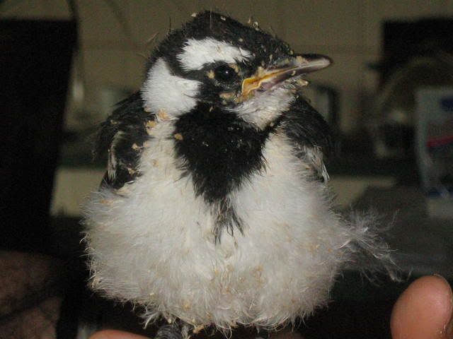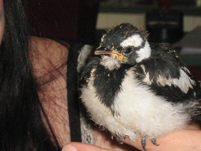 my daughter has rescued this murray magpie and is feeding it every half hour. it seems to be growing and is very tame.