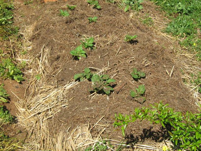 as my spuds emerge from the initial berying and mulching i have burried them again using pine needles from my own property