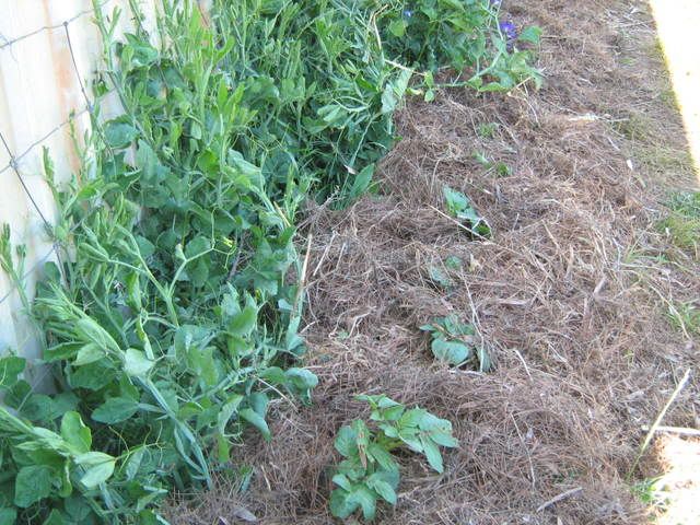 no yellow on the citrus leaves now the hot weather has come, my best ever self sown sweetpeas, spuds with chewed leaves but doing well