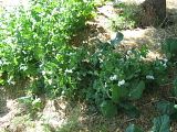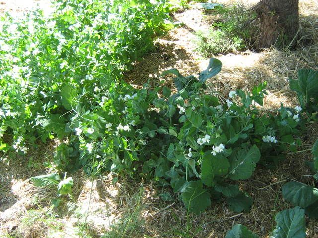 peas starting to flower – so june 21st is an ok time to plant – beans up – garlic and old kale going to seed