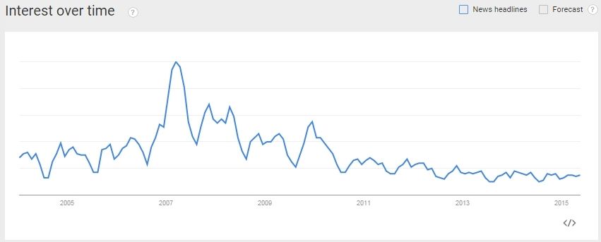The following graph is from “Google Trends” showing that “Global Warming” is so 2007.