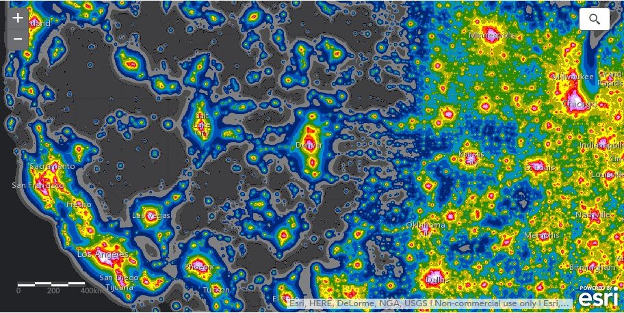 Wester interior light pollution is dominated by Denver, Las Vegas, Phoenix and Salt Lake City.