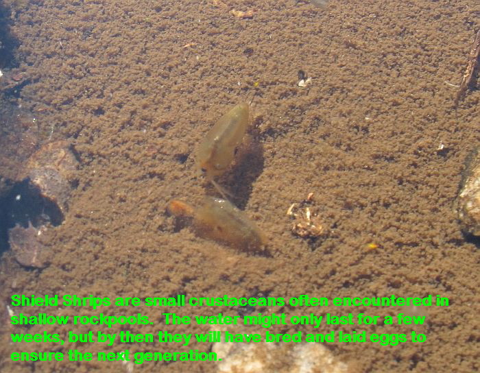 I met the guy who is/was studying a Shield Shrimp at Mt Ridley (60 odd km NE of Esperance). These are different to the very shrimp like crustaceans shown in this thread and more like a bivalve mollusc (in America a similar looking animal is called a Clam Shrimp, which is a better common name), however as the expert here called it a Shield Shrimp, so shall I.