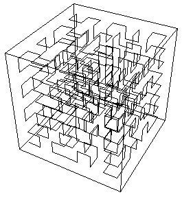 In Causal-Dynamical-Triangulation there is only one space and one time dimension, but the space dimension folds back on itself in such a way as to simulate three dimensional space. Perhaps it’s easiest to approximately visualise this using a Peano Curve. A Peano Curve is one-dimensional but folds back on itself to simulate two dimensions. Or in the image below, three dimensions.