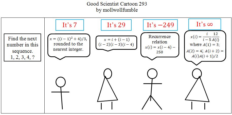 Good Scientist Cartoon. 60th set of five. Plus a bonus cartoon solely for pure mathematicians.