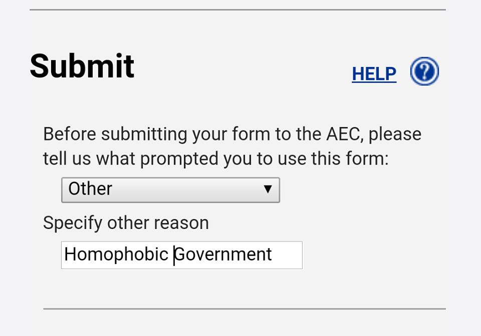 Me: I’d like to see Mr Observer placed on a debating team (such as in school, or formal debating club) where he is place on the “yes” side for marriage equality. Formal debates (such as above) you are placed on a “for” or ‘;against” team, regardless of what side you support, and you must come up with arguments for your team. A challenge for you to accept, Mr Observer? Even though you have your personal opinions, what arguments would you come up with if placed on the “yes” team for marriage equality? Would you accept/refuse to participate?.