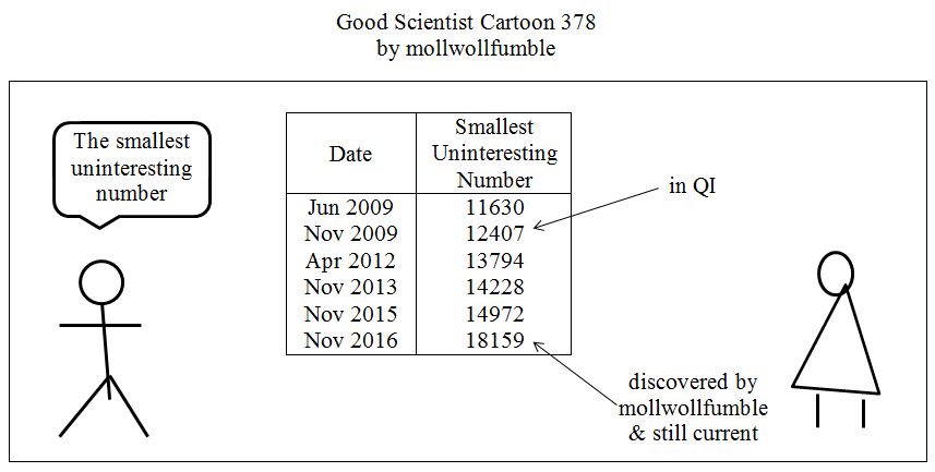 Well you may think that a number being discovered as the lowest uninteresting number by mollwollfumble and still current is not interesting, but I beg to differ.