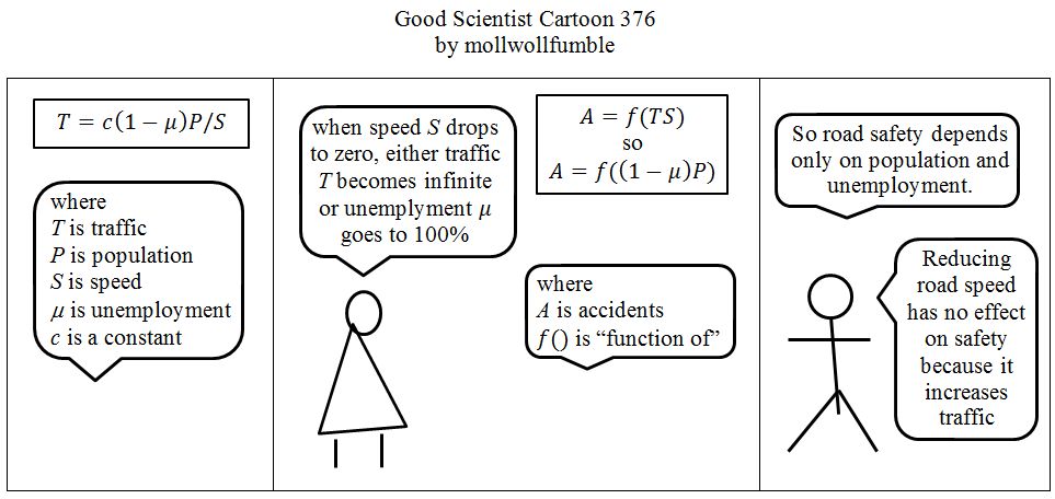 Slowing down traffic by imposition of speed bumps and speed limits does not make roads safer, except through the secondary pathway of making roads undriveable.