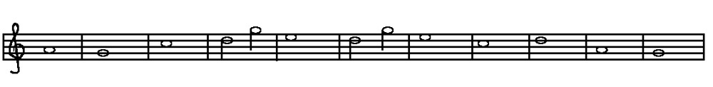 The melody is played by French horns or similar. It is unusual in that there are eleven bars repeated.