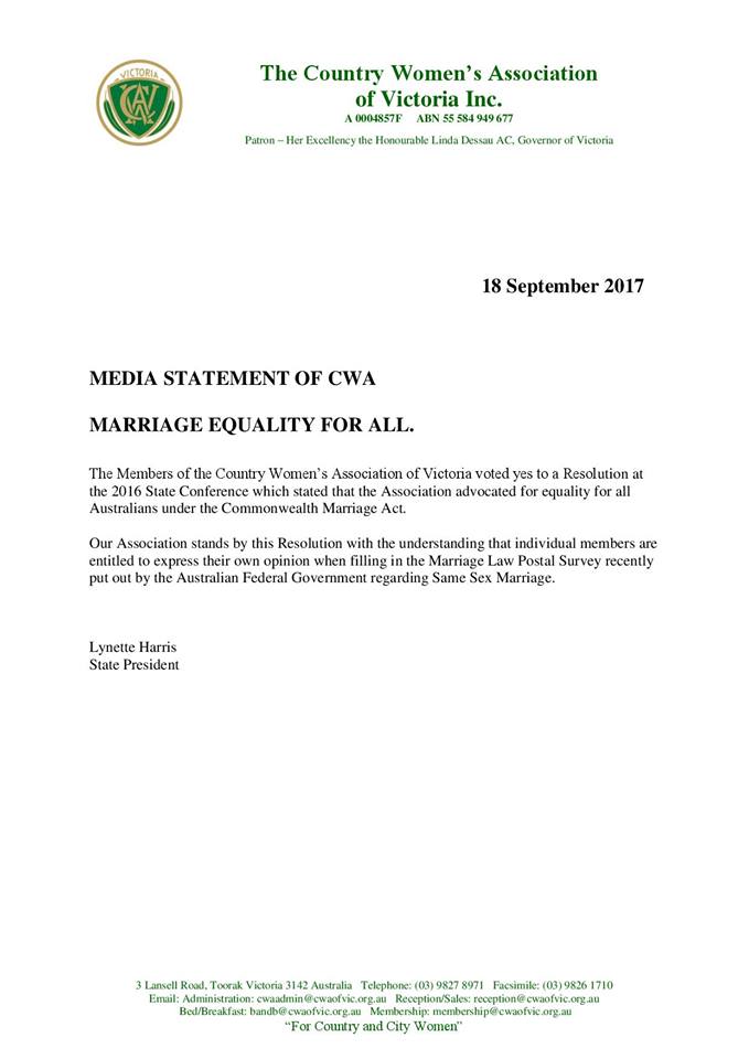 Bloody oath, good on the Ladies. My grandmother was a stalwart of that organisation and I suspect she’d have been a bit surprised at that proclamation :)