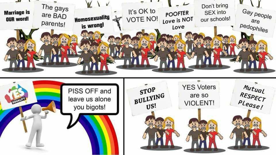 Sad but true. I would have thought the very people wanting equality would use more level, measured, succinct and fact based arguments wrapped up in dialog that resonated with the undecided and no voters. What I see is ugliness.