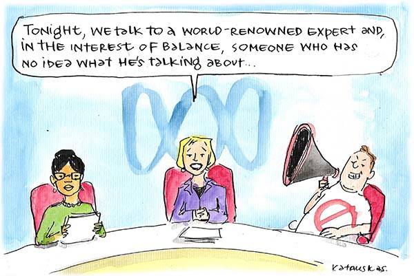 All things being equal, the national broadcaster might be a little more circumspect about giving someone with such fringe views so much airtime. But things are not equal. Shelton is the public face of one side of a public debate, and therefore he and his views must be given a hearing.