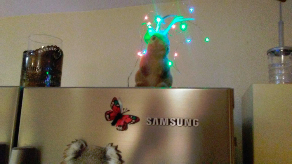 mr kii is overwhelmed by all the fairy lights in the kitchen/front room. I might have overdone it. I will take photos when I get over this exertion.