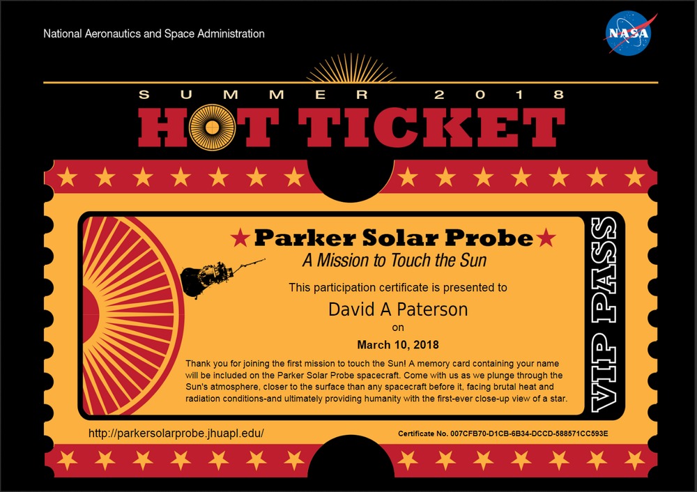NASA is now inviting people around the world to submit their names online to be placed on a microchip aboard NASA’s historic Parker Solar Probe mission. Submissions will be accepted until April 27, 2018. Learn more and add your name to the mission here: http://go.nasa.gov/HotTicket
