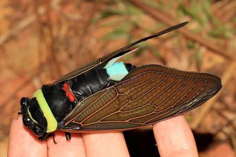 Perhaps I could add the comment here that although many cicadas are brightly coloured as well as noisy, they can be very difficult to see with the naked eye. The only ones I’ve seen have been dead ones.