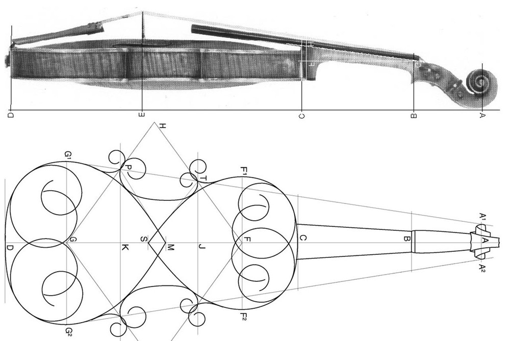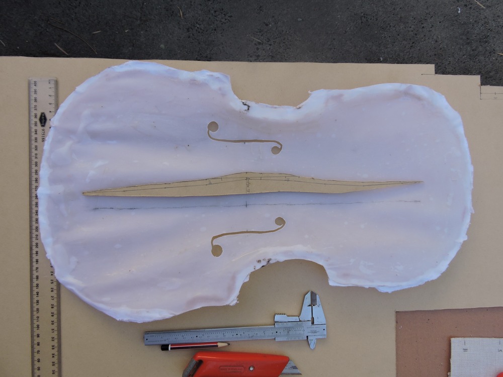 Figure 5b. Marking the bridge and sound holes. Printout from a classical Tenor Viola.