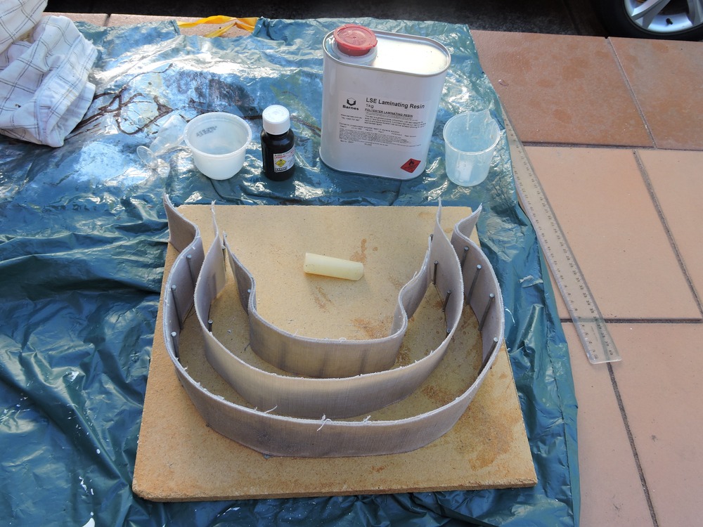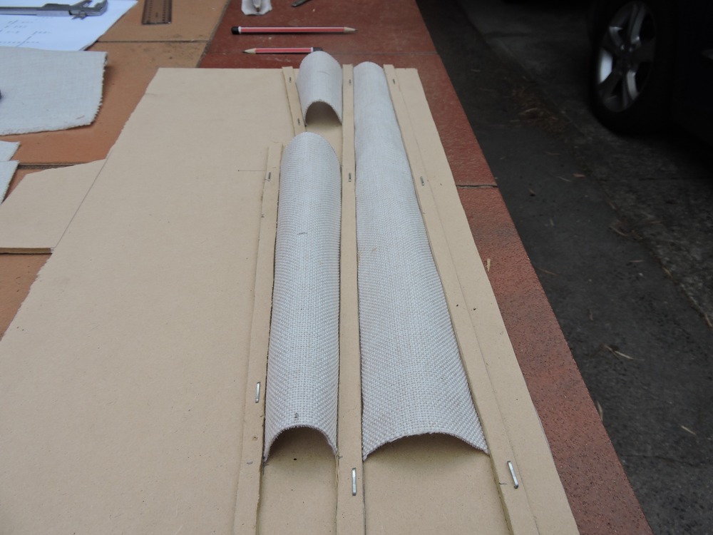 Figure 6a. Making the sides from polyester-impregnated upholstery fabric on a nailboard.