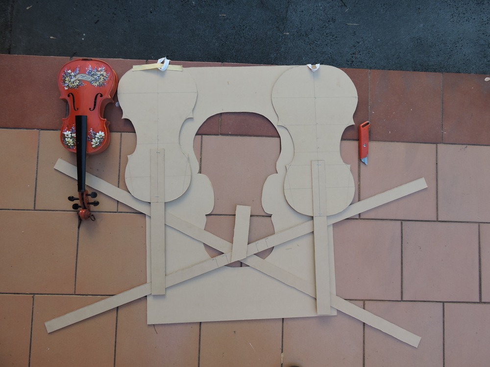 Figure 2. MDF templates. Comparison of sizes, chose the larger template. At left is a 1/2 violin.