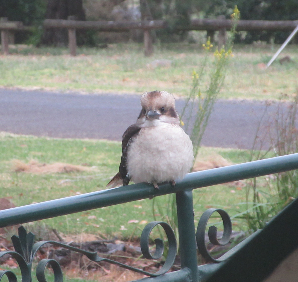 I think this is a young one. I’ve been hearing something that sounds like a Kookaburra trying to make the laughing sound recently in the front garden. This one was sitting on the gate this morning. Looks sort of fluffy. The photos worked quite well taken through the bedroom window. I do now wish I’d cleaned the outside as well as the inside of the window a couple of weeks ago though.